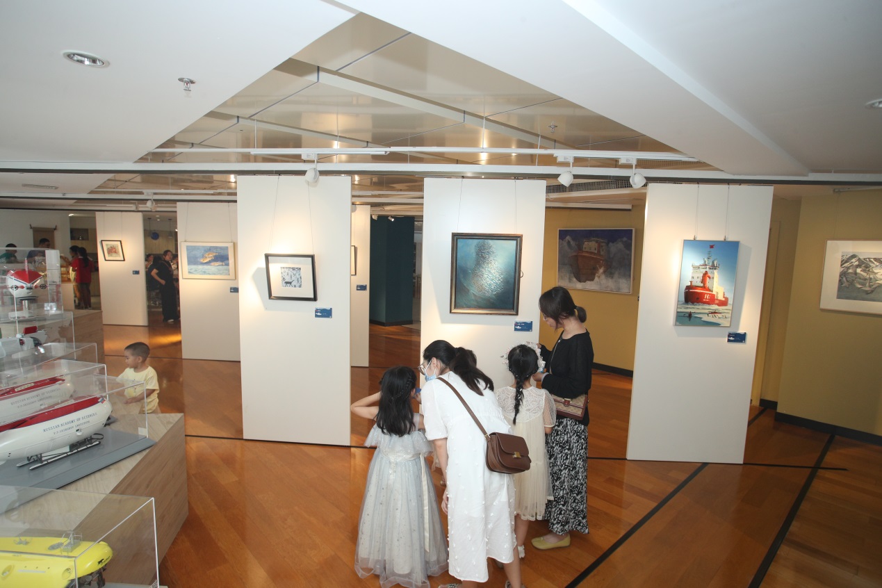 而在深??臻g的科學(xué)與藝術(shù)圖書(shū)館,“極地·深藍”藝術(shù)與海洋畫(huà)展備受歡迎,有別于其他活動(dòng)場(chǎng)地,在這里,公眾可以放慢腳步,靜靜欣賞畫(huà)作的精美和想象力。