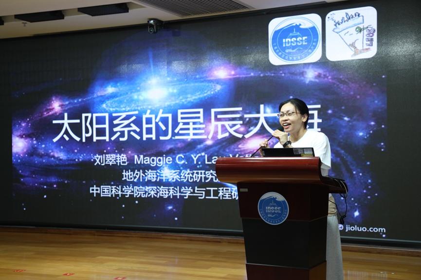 本次活動(dòng)分為四個(gè)場(chǎng)次,每個(gè)場(chǎng)次都精心安排了科普講座。劉心成首席顧問(wèn)為大家講述《我國建設海洋強國戰略的偉大實(shí)踐》,劉翠艷研究員帶領(lǐng)大家走出地球,漫游太陽(yáng)系中其他星體上的海洋世界,程南飛助理研究員生動(dòng)地向大家展示幾個(gè)實(shí)驗模擬的有趣現象,科普專(zhuān)員孔秀則帶領(lǐng)大家一同搭乘載人潛水器下潛到馬里亞納海溝的萬(wàn)米深淵,見(jiàn)識那些千奇百怪的生命。講座現場(chǎng)座無(wú)虛席,過(guò)道甚至門(mén)口擠滿(mǎn)了旁聽(tīng)生,小朋友們則坐滿(mǎn)講臺周邊。