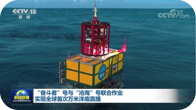 全海深視頻直播系統是在國家重點(diǎn)研發(fā)計劃“深海關(guān)鍵技術(shù)與裝備”重點(diǎn)專(zhuān)項“全海深視頻直播”項目支持下成功研制的。該系統由“滄?!碧栆曨l直播著(zhù)陸器、“凌云”號視頻直播著(zhù)陸器、深海中繼器、水面控制系統和衛星直播系統五部分組成。其中,“滄?!碧栆曨l著(zhù)陸器搭載了項目組研制的全海深超高清3D相機、全海深超高清相機、全海深微光相機、全海深照明系統、全海深無(wú)線(xiàn)/有線(xiàn)光通信系統等載荷,具備全海深超高清視頻實(shí)時(shí)采集、傳輸、處理和直播功能。于2020年11月,與“奮斗者”號全海深載人潛水器在馬里亞納海溝開(kāi)展聯(lián)合海試作業(yè),將其在萬(wàn)米海底進(jìn)行科考作業(yè)的過(guò)程,向全國人民進(jìn)行了世界上首次萬(wàn)米海底的高清視頻實(shí)況直播和科普教育;在國際上首次實(shí)現萬(wàn)米海底“奮斗者”號全海深載人潛水器艙內潛航員與中央廣播電視總臺新聞直播間的實(shí)時(shí)高清視頻對話(huà)。此次成功示范應用,不僅對我國全海深科考提供視頻技術(shù)與裝備支撐,同時(shí)對我國廣電領(lǐng)域在深海進(jìn)行高質(zhì)量的電視信號制作、傳輸提供一條新的途徑。該成果向建黨一百年周年獻上一份賀禮,彰顯我國綜合國力、深海技術(shù)與裝備實(shí)力,極大增強民族自豪感與自信心。