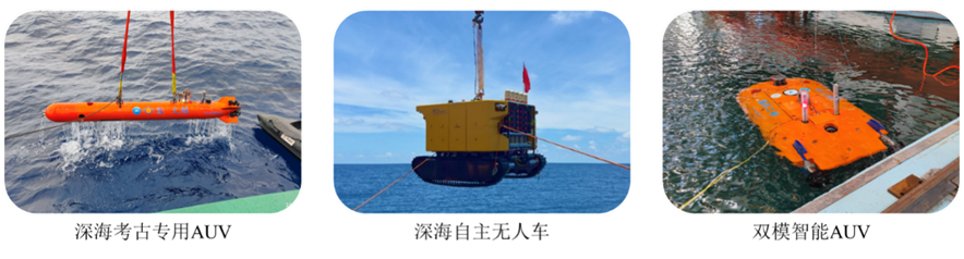 立足海洋科學(xué)研究、安全保障和水下工程作業(yè)需求,聚焦深海自主無(wú)人裝備研發(fā)及其智能控制技術(shù)研究工作。以實(shí)際應用需求為牽引,通過(guò)新型裝備研發(fā)和快速升級迭代,逐步打造深海自主無(wú)人裝備集群,為構建實(shí)質(zhì)性水下無(wú)人作業(yè)能力體系提供支撐。圍繞深??脊盘綔y作業(yè)、海底長(cháng)期移動(dòng)觀(guān)測、復雜區域目標探查、有人/無(wú)人裝備協(xié)同以及深海裝備的智能運動(dòng)控制、作業(yè)環(huán)境感知、自主目標識別、運行狀態(tài)監測、虛擬現實(shí)測試等裝備技術(shù)和理論方法開(kāi)展研究,研制了深??脊艑?zhuān)用AUV、深海自主無(wú)人車(chē)、雙模智能AUV等系列化深海自主無(wú)人裝備。