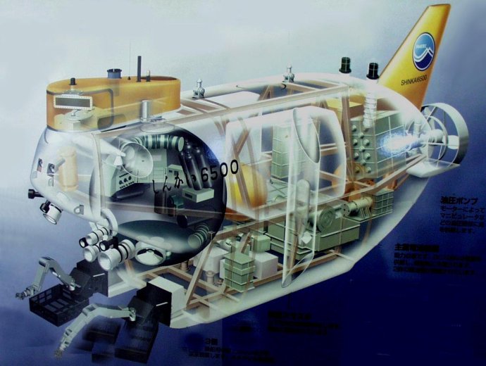 日本“SHINKAI 6500”(しんかい) 載人潛水器是由日本海洋-地球科技研究所(Japan Agency for Marine-Earth Science and Technology, JAMSTEC)研發和運營的深海載人潛水器,1989年建造完成并進行了一系列載人潛水試驗,是日本下潛深度最大、作業能力最強的載人深潛器。“SHINKAI 6500”號在水下作業時間長達8小時,曾下潛到6527米深的海底,創造了載人潛水器深潛的紀錄。自1991年開始服役以來,“SHINKAI 6500”號深潛器在太平洋、大西洋和印度洋從事海底地形、地質和海洋生物的調研,共下潛了1300多次。