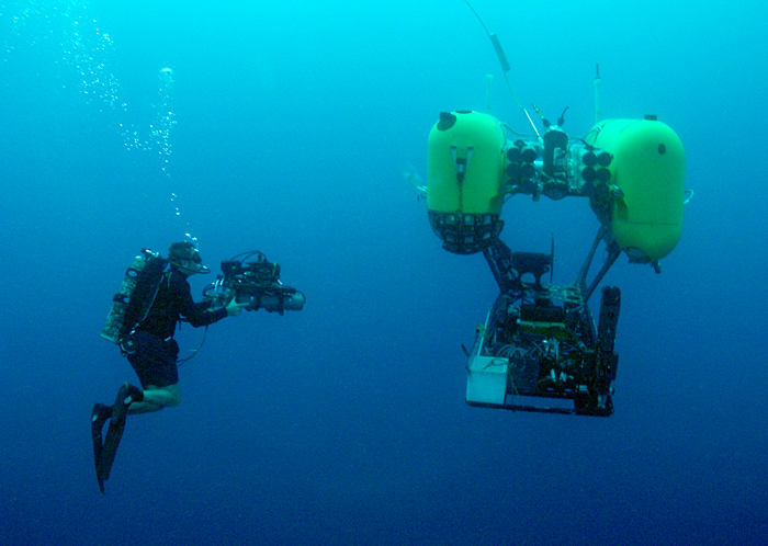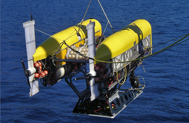 為了增加對(duì)深海的了解,伍茲霍爾海洋研究所的科學(xué)家和工程師們與2008年設(shè)計(jì)了一款更高效、多功能的混合動(dòng)力潛水器“海神”號(hào),這款潛水器可以在深海極端環(huán)境下進(jìn)行作業(yè)。這臺(tái)遠(yuǎn)程遙控潛水機(jī)器人以希臘神話中的海神“Nereus”命名,全名Hybrid Remotely Operated Vehicle Nereus。 “海神”號(hào)(Nereus)是一臺(tái)混合型遙控潛水器(HROV),能夠在世界各地從6000-11000米的超深淵(hadal depths)作業(yè),曾在2009年下潛到“挑戰(zhàn)者深淵”(Challenger Deep)。“海神”號(hào)是世界上第三個(gè)到達(dá)馬里亞納海溝底部的潛水器。“海神”號(hào)之所以稱作混合動(dòng)力潛水器,是因?yàn)樗梢砸詢煞N方式進(jìn)行操作。它以遠(yuǎn)程控制、系纜模式操作、以自由游動(dòng)的自治模式操作時(shí),可把它變成一臺(tái)有纜遙控潛水器或無(wú)纜自治潛水器。此時(shí),它可以調(diào)查海底深度、描繪海底地圖,以及拓寬科學(xué)家的觀察范圍。當(dāng)“海神”號(hào)發(fā)現(xiàn)了科學(xué)家們感興趣的東西,它可以返回母船,變成遠(yuǎn)程操縱潛水器(ROV),即用一根光纖電纜將“海神”和母船連在一起。“海神”可以通過(guò)這根電纜傳遞高清晰度的實(shí)時(shí)視頻和接受來(lái)自母船上潛航員的命令,采集樣品或用機(jī)器手臂進(jìn)行實(shí)驗(yàn)。因?yàn)槟軌蛟谶@兩種操作模式之間切換,“海神”號(hào)能夠在洋底執(zhí)行大量的任務(wù),包括測(cè)繪、搜集巖石和沉積物樣本、捕捉海底生物、對(duì)海底化學(xué)物質(zhì)和還是取樣、拍攝照片等。