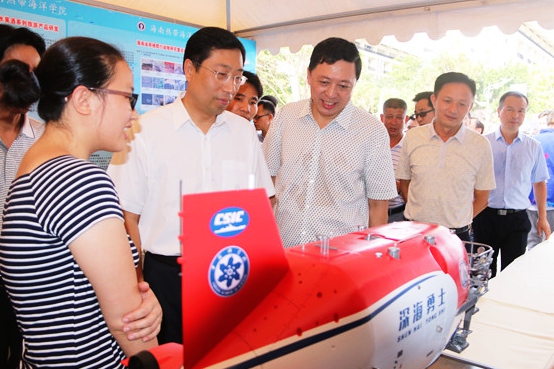 三亞市委常委、宣傳部部長尚林參觀“深海勇士”號載人潛水器模型