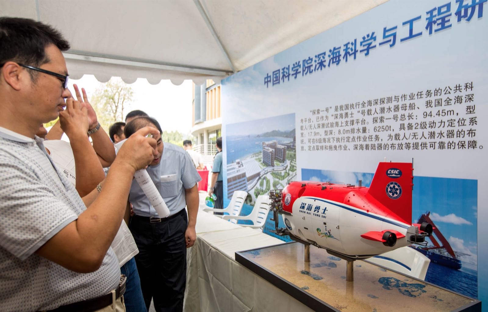 深海所作為“海陸空”科技創新成果突出單位受邀參加開幕式,展出形式分為展板和模型兩類,內容有深海所基本情況介紹,“探索一號”科考船及“深海勇士”號載人潛水器介紹及模型。尚林部長首先來到中科院深海所展區,觀看了“深海勇士”號載人潛水器模型,并與深海所展區負責人溝通交流。當天,“深海勇士”號載人潛水器模型吸引了大批的公眾駐足端詳。