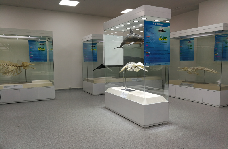 鯨豚標本館簡介:鯨豚標本館于2017年初步建成并正式對公眾開放,是目前國內為數不多專門展示鯨豚標本的平臺。目前展示的7副鯨豚標本中,包括中華白海豚骨骼標本1副,小抹香鯨皮質和骨骼標本各1副,短肢領航鯨皮質和骨骼標本各1副,長吻飛旋海豚皮質和骨骼標本各1副。全部鯨豚標本均為在海南島周邊擱淺死亡的個體,其中中華白海豚標本以及小抹香鯨標本均為相應物種在海南島發現的首個擱淺死亡個體。