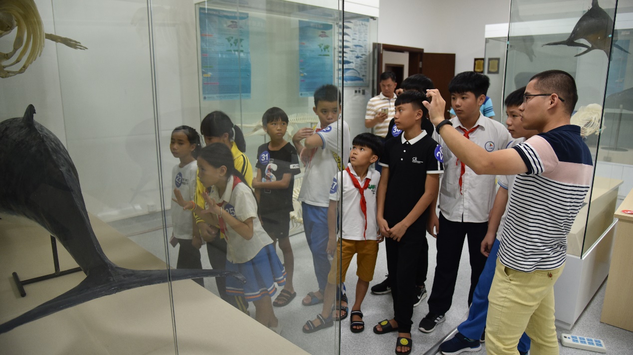 學生們參觀鯨豚標本展示平臺