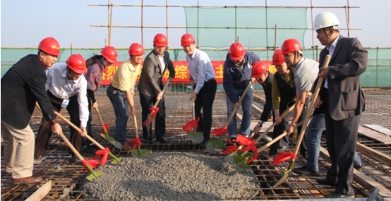 科研綜合樓共10層,建筑面積30905.67平方米,是科研園區建設項目最主要的單體建筑。自2012年9月27日開工建設以來,在籌建組的正確領導下,在基本建設辦公室及施工單位、監理單位等參建單位的共同努力下,歷經479個日日夜夜的緊張施工,至此如期封頂??蒲芯C合樓順利封頂標志著科研園區建設項目主要單體建筑主體結構完工,下一步將轉入墻體砌體、水電及設備安裝和外墻裝修等工作。