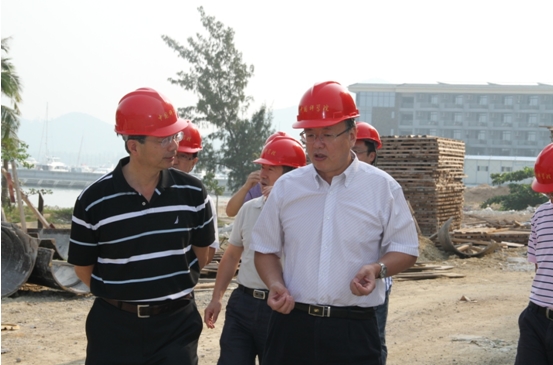 會(huì)前,秦偉一行現(xiàn)場(chǎng)考察了三亞深海所在建的科研、生活園區(qū)。