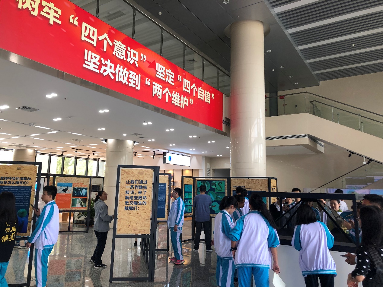 開放活動位于深海所主樓一樓展區,包括海洋生態科普展,鯨豚標本館以及深海科考紀實片觀影區三個展區。在海洋生態科普展區,通過“初見”“窘境”展板,循序漸進的介紹人類目前已知的海洋生物以及他們生存所面臨的捕撈、屠戮及白色污染等問題,最后,通過“攜手”展區,介紹三亞現有的海洋保護組織,呼吁全民參與,共同努力,攜手保護海洋生物,保護海洋生態環境。在該展區還首次通過全息影像技術向觀眾生動的展示了來自8000米水深的大型生物——深海獅子魚,并通過滾動播放旁白的方式科普獲取獅子魚樣品數據的航次及深淵著陸器等詳細信息,讓大家對深海深淵科考有了更加深入的了解。鯨豚標本館本次共展出8個物種22副標本,利用鯨豚聲音模擬演示、多媒體投影、VR虛擬現實體驗等多個手段,為參觀者從三維的視角講述鯨和海豚的進化歷史以及各個物種的特征信息,幫助參觀者了解鯨豚動物生活習性以及擱淺危害。值得一提的是,今年6月上旬,經多方努力救治仍不幸死亡的擱淺領航鯨“萌丫”的遺體,經深海所鯨豚標本館積極爭取,通過水生野生動物保護地方政府主管部門同意, 已被做成皮質標本和骨骼標本,在本次公眾開放活動中一并展出。當時參加救護的公益組織和社會團體代表,專程來到鯨豚標本館,以獨特的方式跟“萌丫”道別。