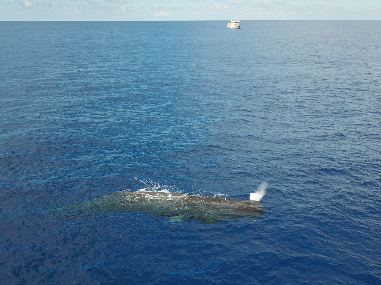 該航次歷時21天,航程3000多公里,考察區域集中在南海北部西沙群島和中沙群島的陸坡、海山及海槽水域。航次采用目視考察和被動聲學監測相結合的方法,并輔以環境DNA收集,旨在“2019年南海深潛及遠海鯨類科考” 航次的基礎上,進一步對考察海域的鯨類物種多樣性、種群現狀及分布模式等進行較為全面的調查。考察期間,共目擊到深潛和遠海鯨類動物31群次,其中深潛鯨類14群次。通過視頻和照相拍攝、動物水下發聲記錄,獲取了大量的南海鯨類圖片、視頻和音頻等資料。