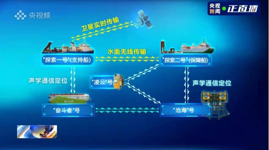總臺演播室與“奮斗者”號艙內潛航員視頻直播連線