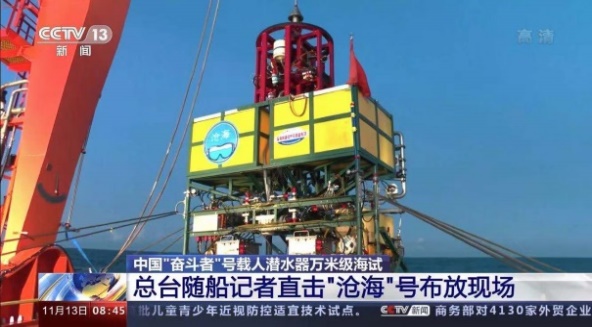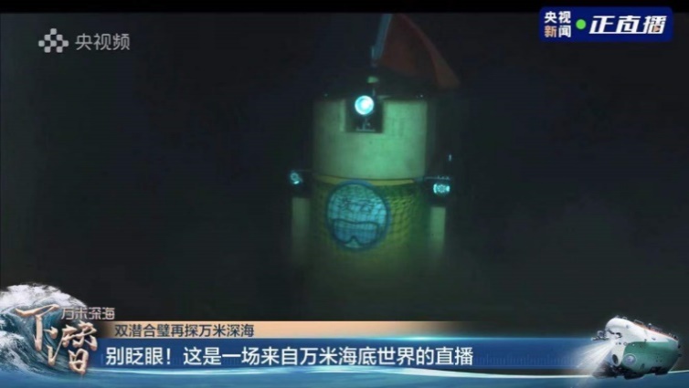 全海深視頻直播系統中的“滄海”號視頻著陸器開展了6次萬米試驗,其中“滄海”號與“奮斗者”號在萬米海底開展了三次聯合作業;全海深視頻直播系統建立了“奮斗者”號載人潛水器→“滄?!碧栆曨l著陸器→“探索二號”船水面控制中心→衛星→中央廣播電視總臺演播室的實時通信鏈路。實現把“奮斗者”號在萬米海底進行科考作業的過程向全國人民進行了世界上首次萬米海底的超高清視頻實況直播和科普教育;通過“滄海”號和“奮斗者”號載人潛水器上的通信對接,使北京中央廣播電視總臺演播室和萬米海底的潛航員、科學家開展實時視頻對話。海試驗證了項目組研制的全海深超高清相機、超高清3D相機、照明系統、中繼器和“滄?!碧栔懫鳌⑺芙硬寮热繃a裝備的可靠性。