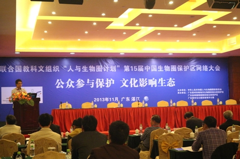 11月20—23日,三亞深海所海洋哺乳動物與海洋生物聲學(xué)研究組研究員李松海、助理研究員林明利及研究助理邢露如,在廣東湛江參加了以“公眾參與保護、文化影響生態(tài)”為主題的聯(lián)合國教科文組織“人與生物圈計劃”第15屆中國生物圈保護區(qū)網(wǎng)絡(luò)大會。會議由中國人與生物圈國家委員會主辦,廣東雷州珍稀海洋生物國家級自然保護區(qū)、廣東徐聞珊瑚礁國家級自然保護區(qū)和廣東雷州烏石國家海洋公園承辦。國家有關(guān)部委領(lǐng)導(dǎo)、各地國家級自然保護區(qū)負(fù)責(zé)人、相關(guān)科研院校專家學(xué)者、中外知名NGO保護組織代表等近百人參會。