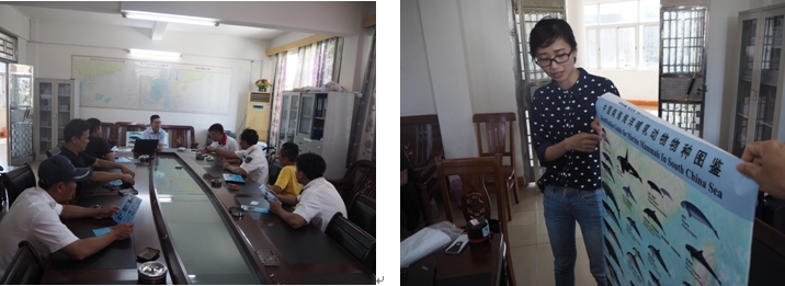 走訪期間,科研人員介紹了海洋哺乳動物與海洋生物聲學實驗室的研究工作,及在鯨類擱淺救助方面的專業特長,希望能夠在第一時間收到漁政監管部門獲悉的鯨類擱淺信息,發揮自身專業優勢協助做好海洋哺乳動物擱淺救助工作,建立長期合作關系??蒲腥藛T還向走訪單位分發了海洋哺乳動物與海洋生物聲學實驗室制作的《中國南海海洋哺乳動物物種圖鑒》、《海洋哺乳動物擱淺救護手冊》和《鯨類知識普及手冊》等科普資料。