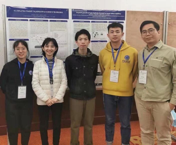 孫既粵和黃盈盈分別作了題為“Crystal Growth of Gas Hydrate Formed in Fused Silica Capillary” (作者:孫既粵、辛洋、周義明、蔣磊)、“0.1-2 MPa, 273K-373K 條件下 H2S 在純水和 NaCl 水溶液中擴(kuò)散系數(shù)的測定”(作者:黃盈盈、蔣磊、周義明、陳穎)的墻報展示。此次會議,鍛煉了年輕科研人員的學(xué)術(shù)交流能力,增進(jìn)了同行間的了解與合作,受到了參會專家的一致好評。