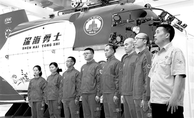 中科院深海所“深海勇士”號(hào)載人潛水器設(shè)計(jì)師胡震和深潛團(tuán)隊(duì)。 李英挺攝