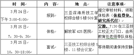 2.請考生自行提前聯系住宿,復試的來回路費、食宿費自理,三亞深海所給予每生500元補貼。