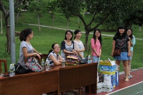 晚上7:30分,深海籃球隊10名隊員穿著嶄新的隊服在球場上一字排開,向?qū)γ娴能娙酥乱猿绺叩木匆猓跋蛭渚瘧?zhàn)士致敬”,“向中科院學習”,嘹亮的聲音在華燈初上的夜空中久久回響……