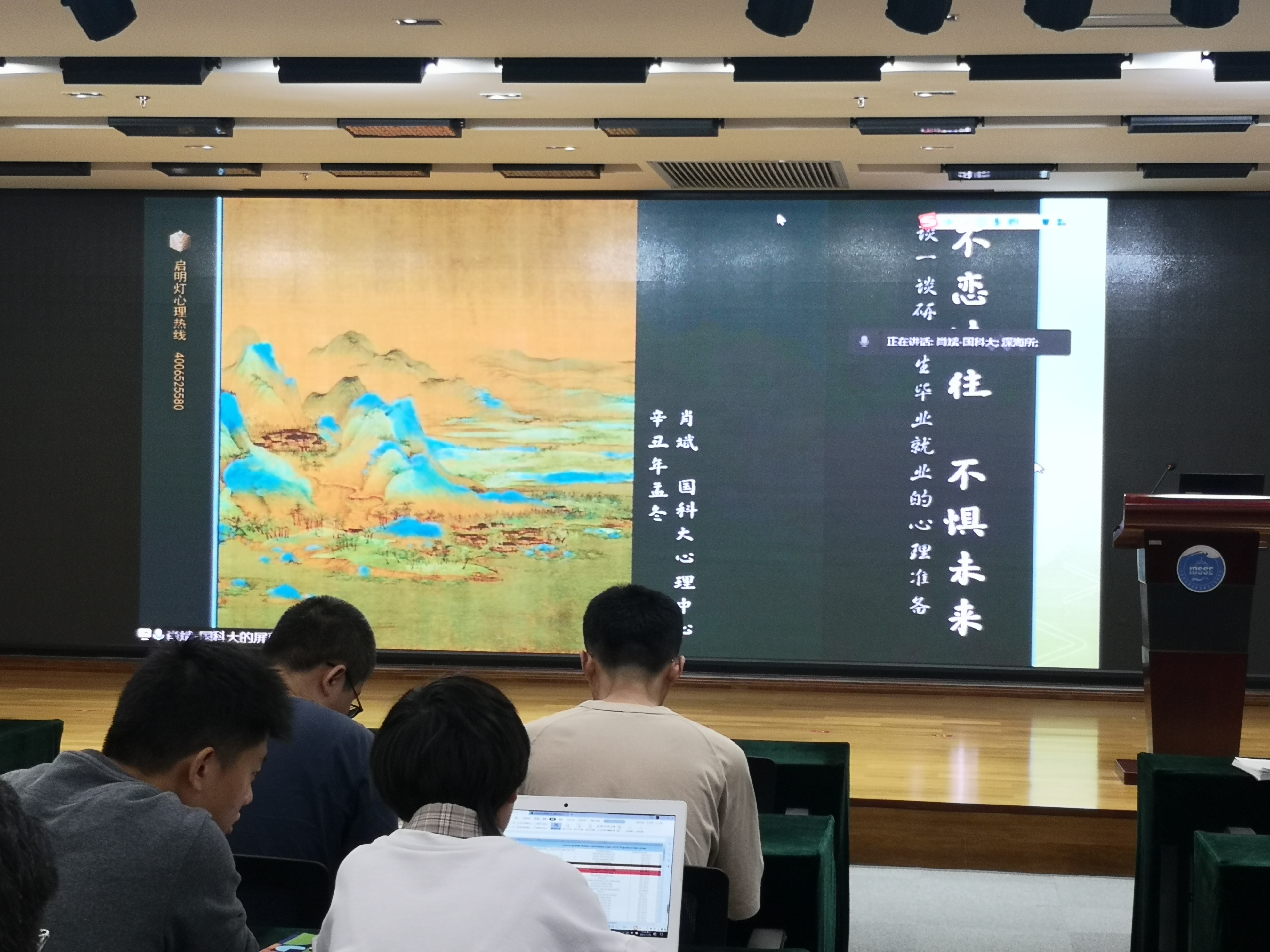 肖斌在講座中為大家分析了研究生畢業(yè)就業(yè)時(shí)常見(jiàn)的焦慮原因,例如信息網(wǎng)絡(luò)的全覆蓋、學(xué)生與社會(huì)的脫節(jié)、就業(yè)的艱難選擇、與曾經(jīng)的同學(xué)格格不入、理想與現(xiàn)實(shí)的落差等,幫助我們從古代詩(shī)詞與中華文化中尋求解決之道,包括全方位認(rèn)識(shí)自己、學(xué)會(huì)換角度看待問(wèn)題、學(xué)會(huì)脫離舒適區(qū)、以平常心看待失敗與遺憾等。肖斌的講座是潤(rùn)物細(xì)無(wú)聲的引導(dǎo)啟發(fā),為同學(xué)們的畢業(yè)就業(yè)做了一次極好的心理建設(shè)。