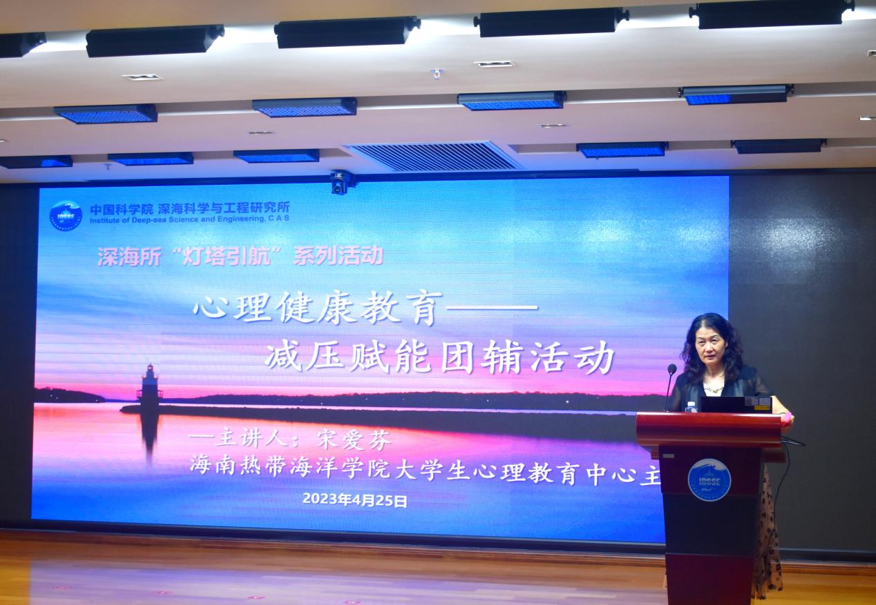 為關(guān)愛深海所研究生心理健康、緩解學(xué)生心理壓力,4月25日下午,人事教育處特邀海南熱帶海洋學(xué)院大學(xué)生心理教育中心主任宋愛芬教授來所開展“燈塔引航”系列活動第十三講。