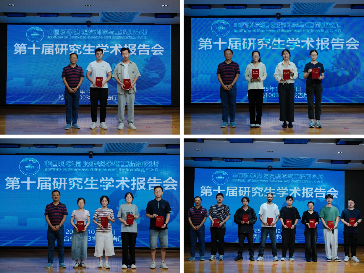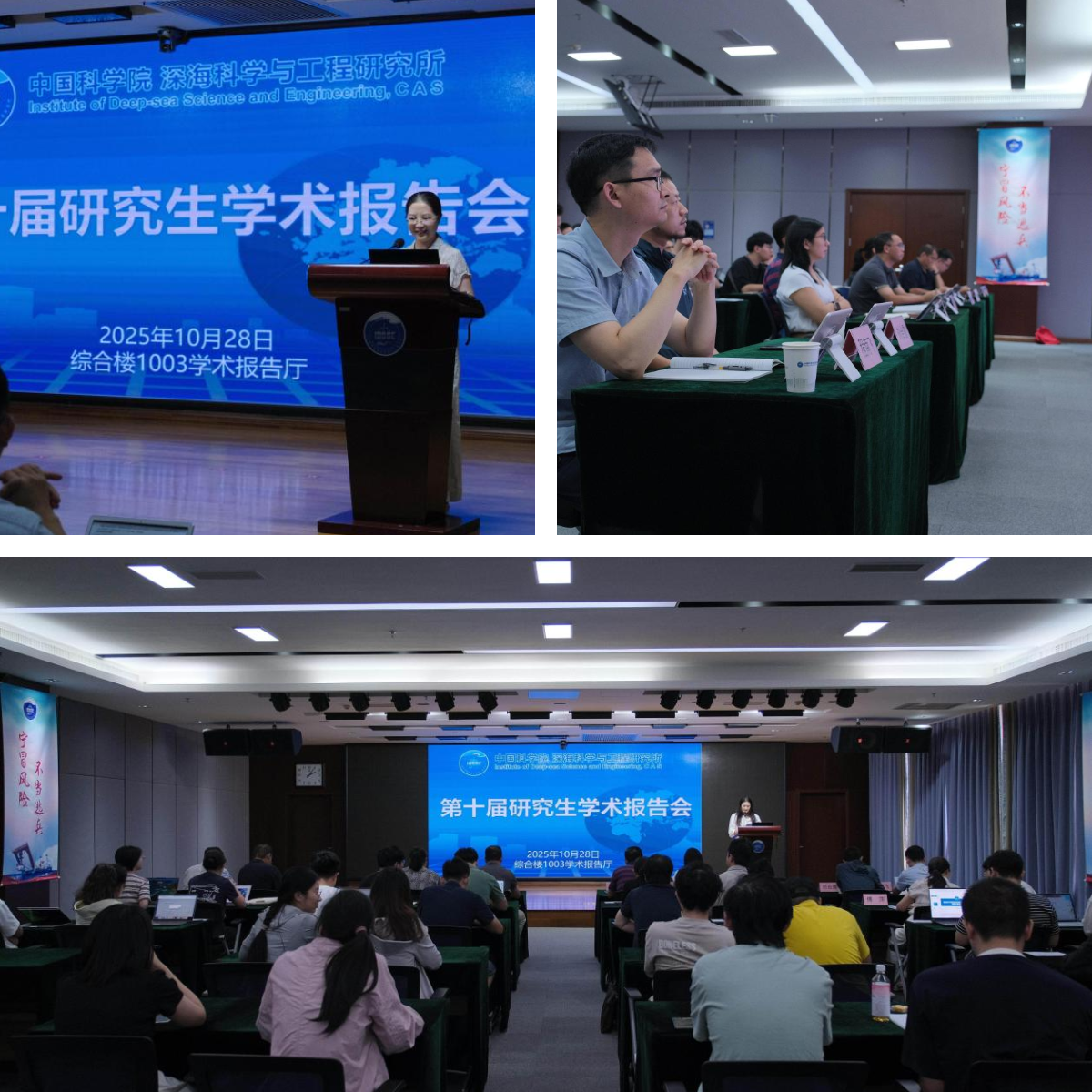 2025年10月28日下午,中國科學院深海科學與工程研究所第十屆研究生學術報告會在綜合樓1003學術報告廳舉行。來自不同年級、專業的14名博士研究生、4名碩士研究生,圍繞各自的科研方向進行了學術交流與成果展示。會議邀請了8名評委對各位研究生的報告進行點評。