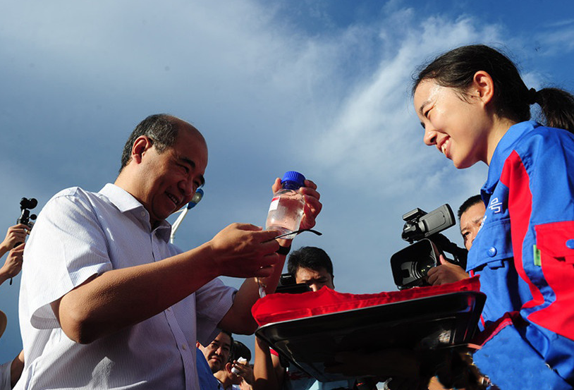 8月12日上午8點,中國4500米載人潛水器及萬米深潛作業的工作母船“探索一號”科考船首航歸來。中國科學院相里斌副院長、海南省人民政府王路副省長,科技部、國家海洋局、中國船舶重工集團、中國五礦集團等有關部門和單位領導和同志、科考隊員家屬代表在三亞碼頭迎接科考隊返航。中國科學院白春禮院長向科考隊致賀信,海南省人民政府王路副省長發表講話。簡樸而隆重的歡迎儀式后,科考隊向迎接的領導和代表匯報了本次深淵科考工作開展情況。