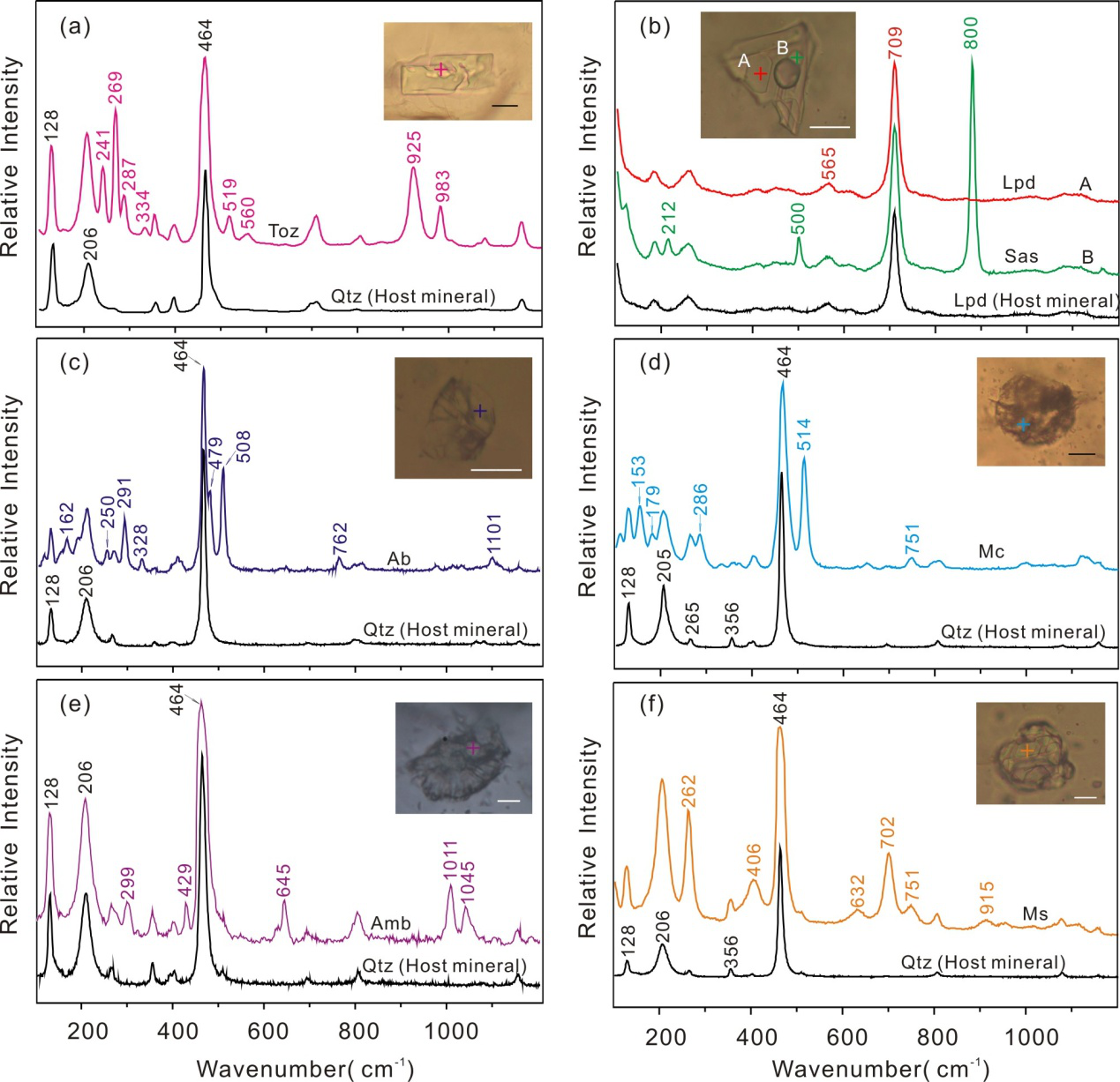 為此,深海所周義明研究員課題組嘗試從流體和熔體包裹體方面探索該礦床的形成機(jī)制。主要利用熱液金剛石壓腔和拉曼光譜儀對(duì)宜春Ta-Nb礦床不同礦化帶石英礦物中的包裹體的類型、成分以及完全均一溫度等進(jìn)行了實(shí)驗(yàn)研究。實(shí)驗(yàn)結(jié)果表明該礦床中的鹽水溶液包裹體所包裹的流體體系具有低均一溫度(160~240℃)、低密度(0.86~0.94g/cm3)和低鹽度(0.8~6.6 wt%NaCl)的特點(diǎn);硅酸鹽熔體包裹體的子礦物主要為石英、鈉長(zhǎng)石和白云母,其次還有少量的微斜長(zhǎng)石、鋰云母、黃玉、天然硼酸和磷鋁鋰石;自二云母花崗巖帶→白云母花崗巖帶→鈉長(zhǎng)石花崗巖帶→鋰云母鈉長(zhǎng)石花崗巖帶,熔體包裹體中的鈉長(zhǎng)石的含量呈逐漸遞增的趨勢(shì),而SiO2的含量則逐漸遞減。由組分加權(quán)平均得到的熔體包裹體的密度也呈逐漸降低的趨勢(shì);熔體包裹體均一實(shí)驗(yàn)表明,硅酸鹽熔體包裹體的完全均一溫度為776~860℃,固相初熔溫度為570~710℃,且自下而上的不同礦化帶中,熔體包裹體的均一溫度呈現(xiàn)降低的趨勢(shì)。最終,通過(guò)實(shí)驗(yàn)證明了宜春Ta-Nb礦床是巖漿連續(xù)結(jié)晶分異作用的結(jié)果,該成果發(fā)表在《Journal of Asian Earth Sciences》(Li et al., 2017;The formation of the Yichun Ta-Nb deposit, China, through fractional crystallization of magma indicated by fluid and silicate melt inclusions)上。