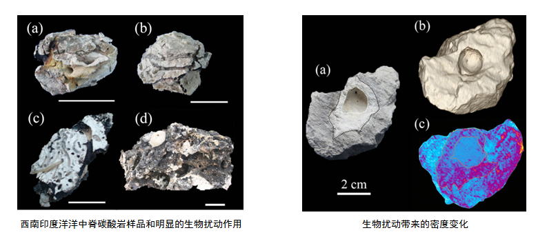 生物擾動作用是海洋沉積物中的常見現象,能夠促進沉積物和間隙水之間的物質交換,是沉積物地球化學元素重新分布的營力之一。為探索生物擾動作用和深海碳酸巖成巖作用之間的關系,中科院深海科學與工程研究所彭曉彤研究員團隊對采集自西南印度洋洋中脊的深海碳酸巖進行了X射線斷層掃描、電子顯微鏡以及元素同位素地球化學研究。結果表明,該碳酸巖成巖過程伴隨的生物擾動作用促進了深海碳酸鹽礦物的溶解和重結晶過程,驅動了深海碳酸巖成巖作用的發生。以上認識不僅有助于拓展對深海碳酸巖成巖作用的理解,也加深了對深海底棲生物活動和地質過程互相作用的認識。