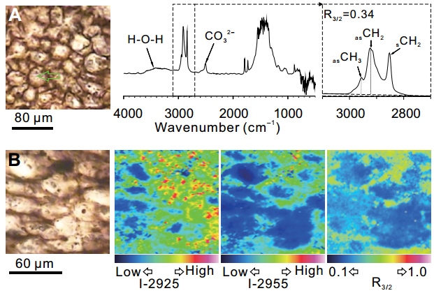 紅外光譜圖顯示蕨類化石細(xì)胞微尺度有機(jī)分子官能團(tuán)差異
