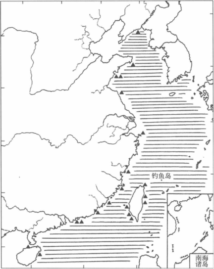 圖5. 我國海域抹香鯨的潛在分布及擱淺/捕獲地點(diǎn)(圖片來源:王丕烈《中國鯨類》)