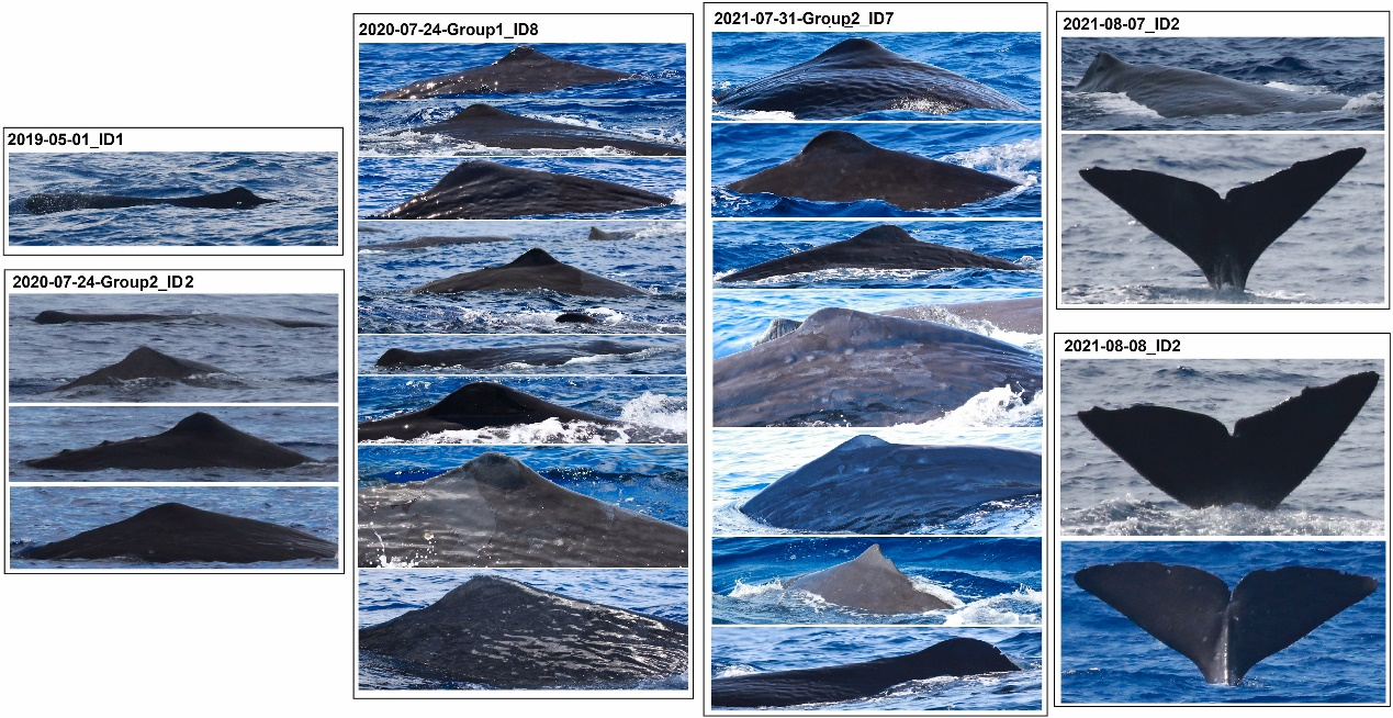 圖6. 南海海域目前所識(shí)別的22頭抹香鯨個(gè)體(圖片來源:深海所研究團(tuán)隊(duì);拍攝者:林文治/林明利/劉明明)