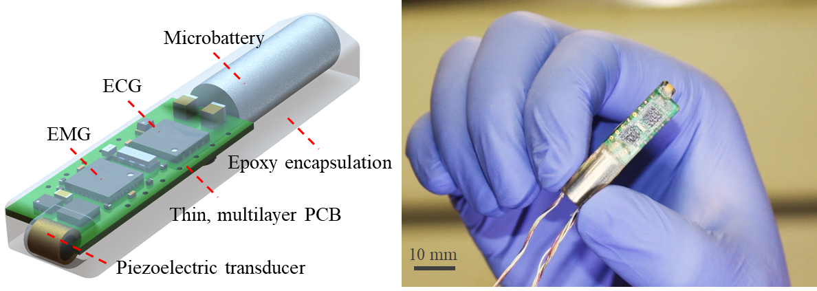該獲獎論文在國際上首次提出并實現了集邊緣計算、低功耗集成電路設計等技術于一體,能夠實時監測水生動物行為、生理和環境參數的微型電子標簽。此標簽集成了溫度、壓力、心電、肌電及慣性傳感器,具有極低的功耗(低至8 μA)、極小的尺寸(直徑 7 mm,長度 37 mm)和濕重(0.8 g),并于2021年獲得了被譽為科技界“創新奧斯卡”的“全球百大科技創新獎”(R&D 100 Awards)。