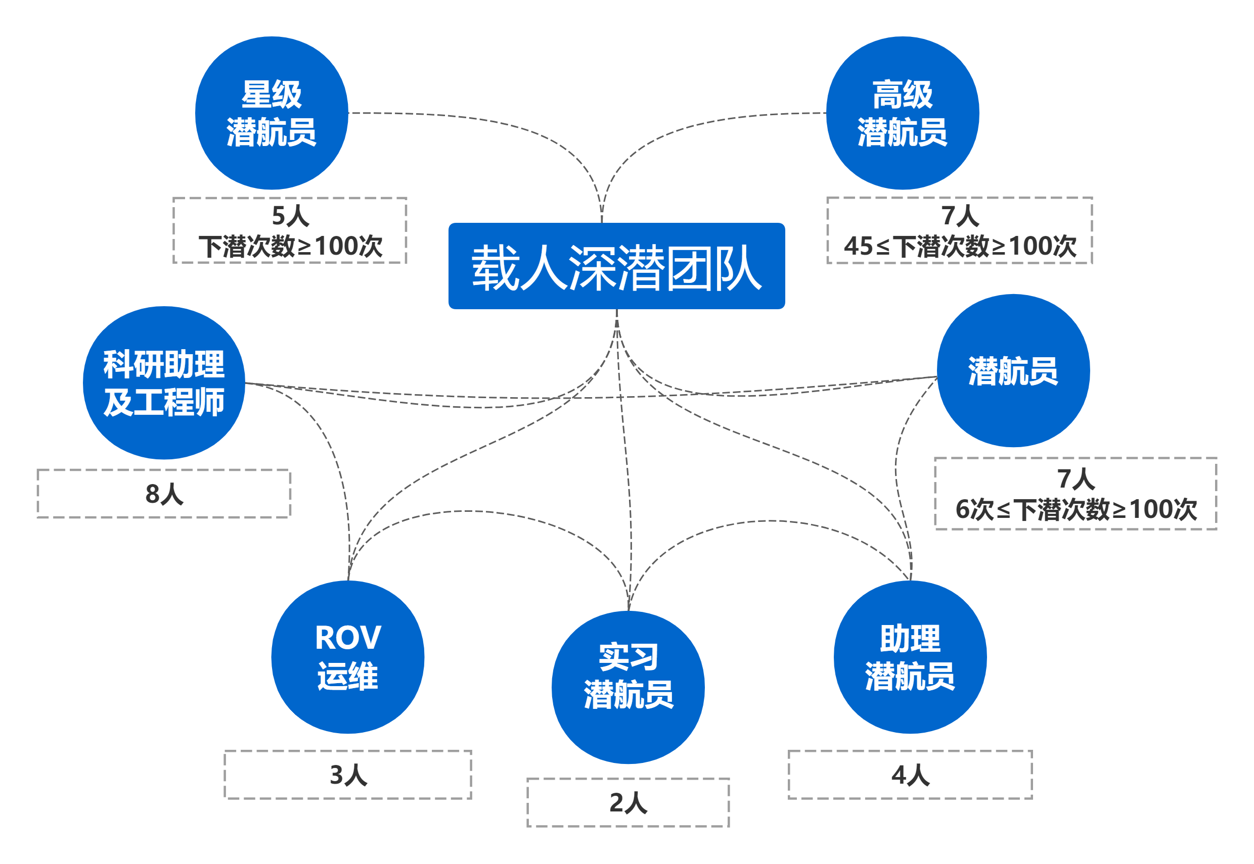 深潛技術(shù)研究室目前共有星級(jí)潛航員5人,高級(jí)潛航員7人,潛航員7人,助理潛航員4人,實(shí)習(xí)潛航員2人,ROV運(yùn)維人員3人,科研助理8人。